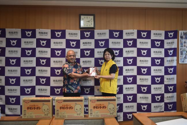 11月6日(木)、島尻かすりライオンズクラブより、貧困世帯支援を目的とした寄贈がありました。今回の寄贈内容は、調理なしでも食べられるカップラーメン10万円分と、乳児向けのミルク缶支援のための金一封(10万円)です。