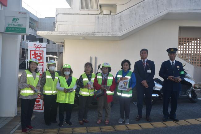 南風原町更生保護女性会は、与那原警察署と合同で、南風原郵便局にて特殊詐欺の未然防止に向けた啓発活動を行いました。当日は、郵便局を訪れた住民に対し、巧妙化する詐欺の手口や防犯対策を呼びかけました。