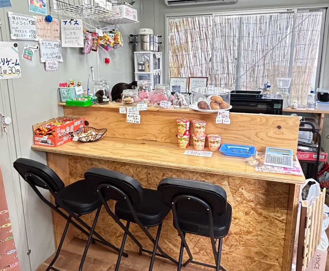 大人の方でも憩いの場として来店しやすいようカウンター式の小さな飲食スペースやコーヒーもご用意しており、もちろんテイクアウトも可能です。コーヒーを飲みながら、お菓子をいただきながら店主とのお喋りもいいですね♪