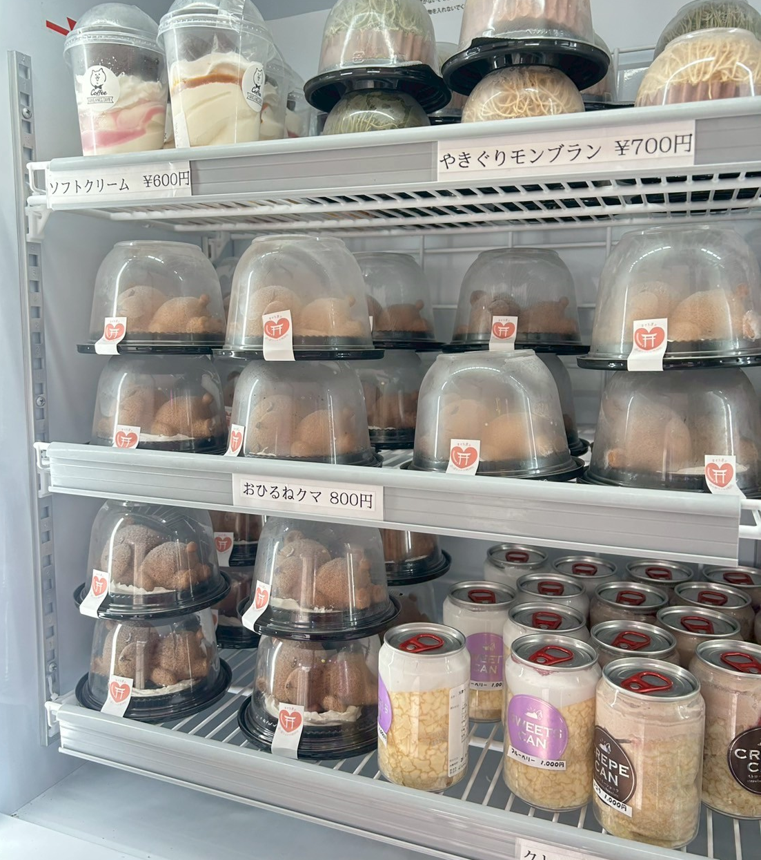 スイーツは、ユニーク品からお手頃価格まで種類が豊富!クマさんがお昼寝している!?スイーツや、ねこがプリンになっていたり、おむすびかと思いきや実は・・・な商品など気になる名前の商品が様々。崖淵シュークリームやショートケーキ缶など話題の商品も。