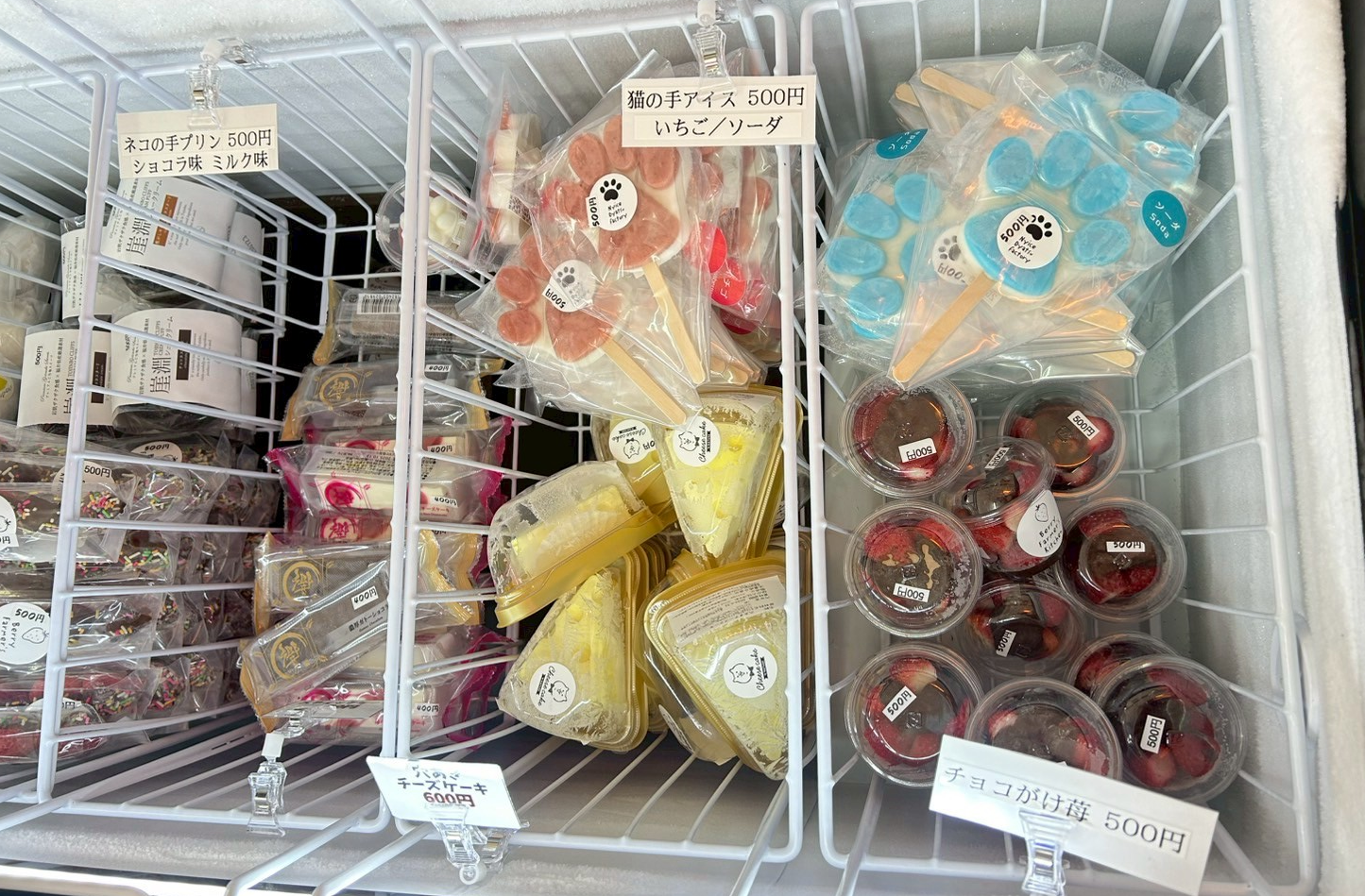 店内には、県外の人気スイーツやお肉、ラーメンなどお惣菜の冷凍食品が沢山並べられていました。