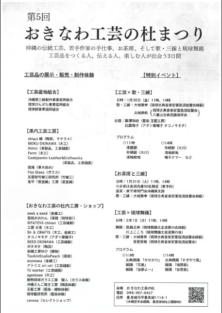 ー沖縄の伝統工芸、若手作家の手仕事、お茶席、そして歌・三線と琉球舞踊...。