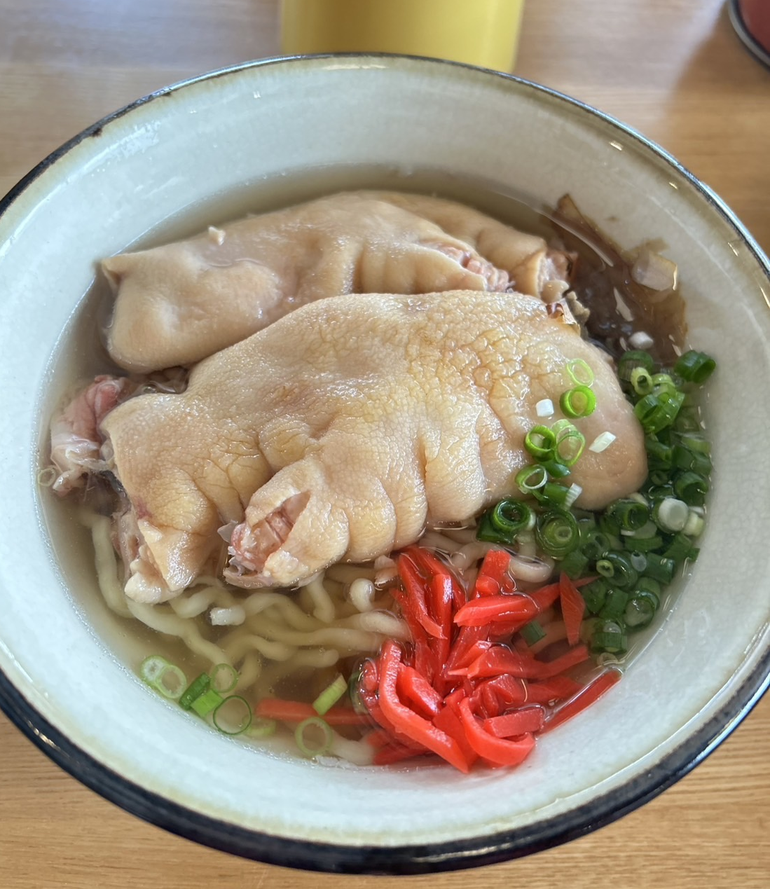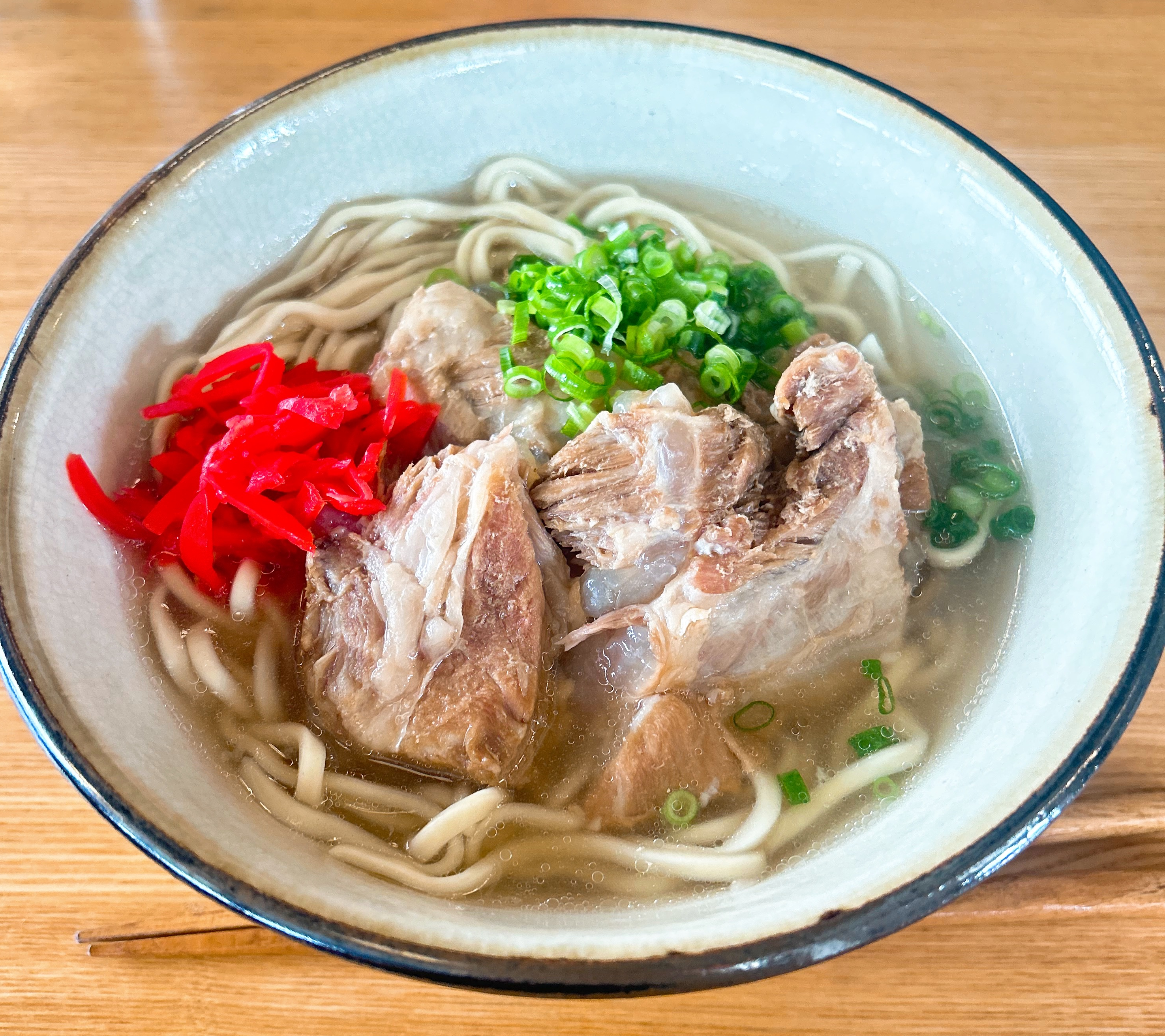 てびちそばは大きなてびちが2つも入っており、とろっとろでお箸で掴むとほぐれるほど柔らかい。そしてなんと、沖縄そばは並の値段と変わらず大盛りに変更出来るのでとってもお得です。